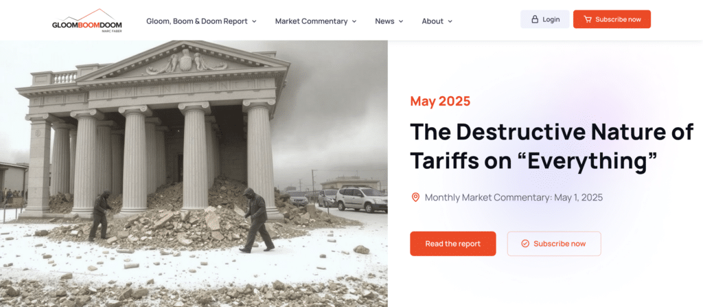 末日博士在其網站(gloomboomdoom.com)會定期發表對環球經濟及金融市場深入分析的付費刊物《Gloom Boom & Doom Report》,亦出版過《Tomorrow’s Gold: Asia’s Age of Discovery》等書籍。