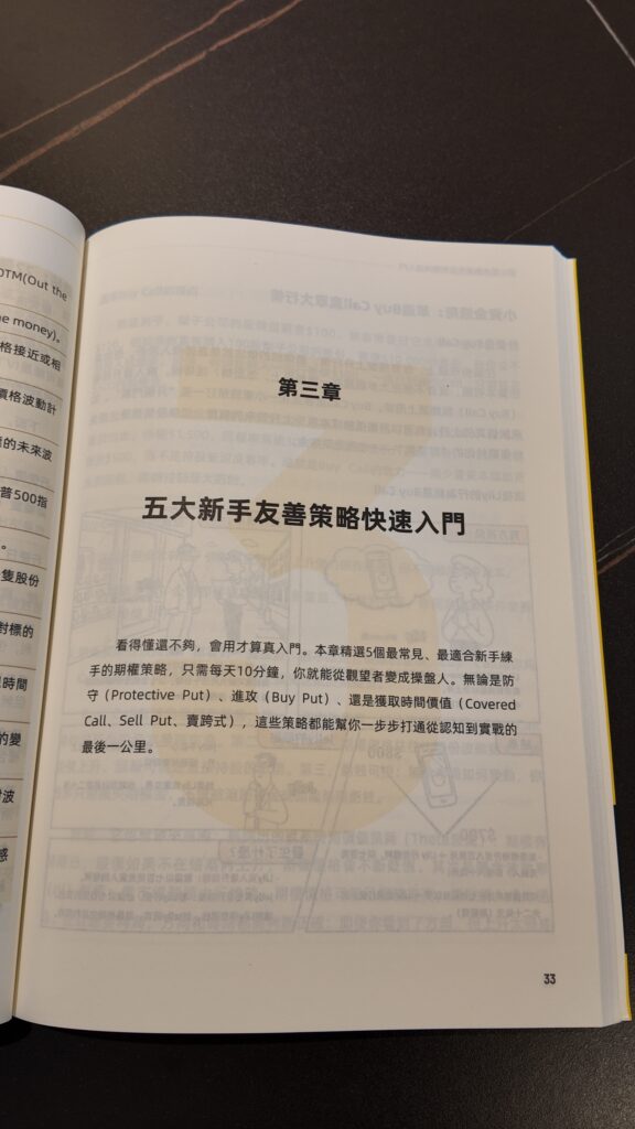 筆者認爲老虎證券的《期權通關手冊》非常適合新手閱讀,書中用了許多生動有趣的比喻,令新手更容易理解期權背後原理,例如「波動率 =期權的市盈率(P/E)」,「(IV Crush) = 定時炸彈」,配以輕鬆易懂的漫畫示例,以深入淺出的方式爲投資者進行期權知識科普,因此誠意推薦給各位讀者!
